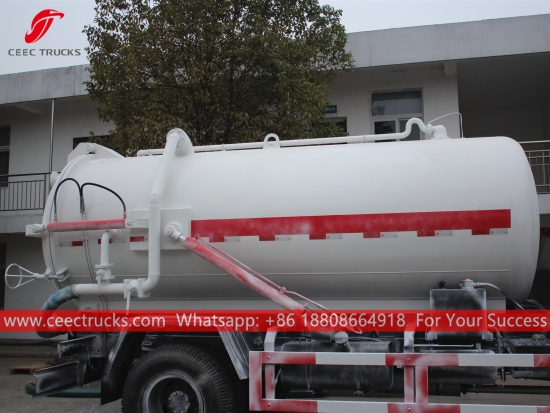 DongFeng 10cbm vakumlu kamyon, Sağdan direksiyonlu model 4x2 şasi, 6 vitesli manuel şanzıman, CUMMINS 190HP dizel motor, boyama ve logolar ihtiyaçlara bağlıdır.