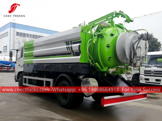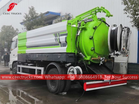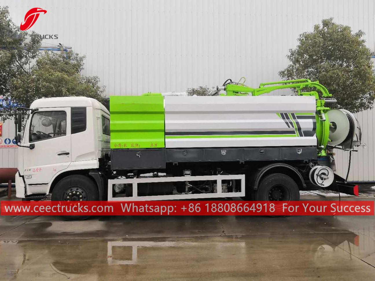 En iyi kalite 12CBM kombine kanalizasyon temizleme kamyonu, Dongfeng 4x2 LHD şasi, FAST 8 vitesli manuel şanzıman, CUMMINS 210HP dizel motor, ünlü marka yüksek basınçlı temizleme pompası ve vakum pompası, isteğe bağlı ön, orta ve arka püskürtme memesi, Tüm boyama ve logolar gereksinime bağlıdır.