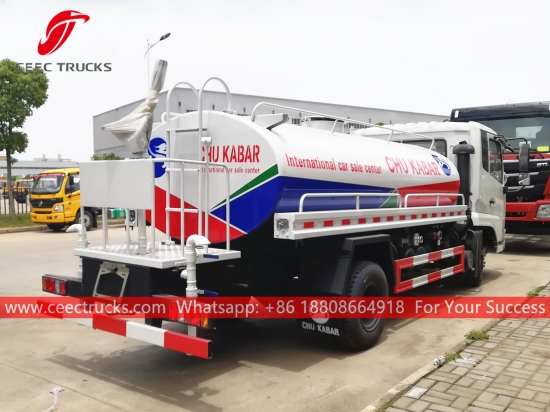 DONGFENG 12.000L su tankeri kamyonu, DONGFENG 4x2 soldan direksiyonlu şasi, 6 vitesli manuel şanzıman, CUMMINS 190HP dizel motor, ünlü marka su pompası, isteğe bağlı ön, orta ve arka püskürtme memesi. Tüm boyama ve logolar gereksinime bağlıdır.