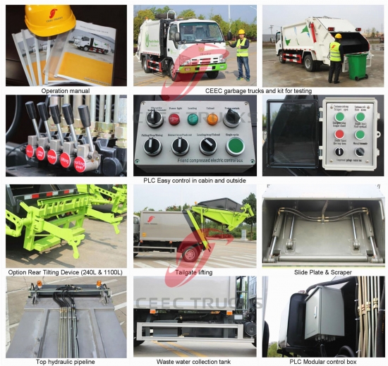 Avrupa standardı 12000 Litre çöp sıkıştırma kamyonu kiti, yüksek mukavemetli çelik malzeme sıkıştırıcı gövde, ithalat kontrol PLC modeli, hidrolik silindir kontrol cihazı, kolay kullanım için İngilizce versiyon kontrol kutusu kullanır