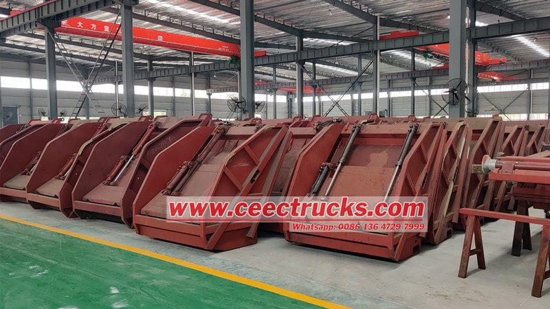 ● Yükleyici, çöp toplama kamyonu yapısının temel bir bileşenidir. Yükleyici gövdesi, kızak plakası ve kazıyıcıdan oluşur ve dayanıklılık için yüksek mukavemetli çelikten üretilmiştir.