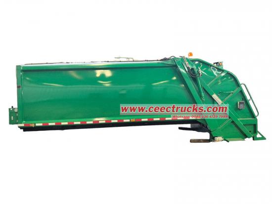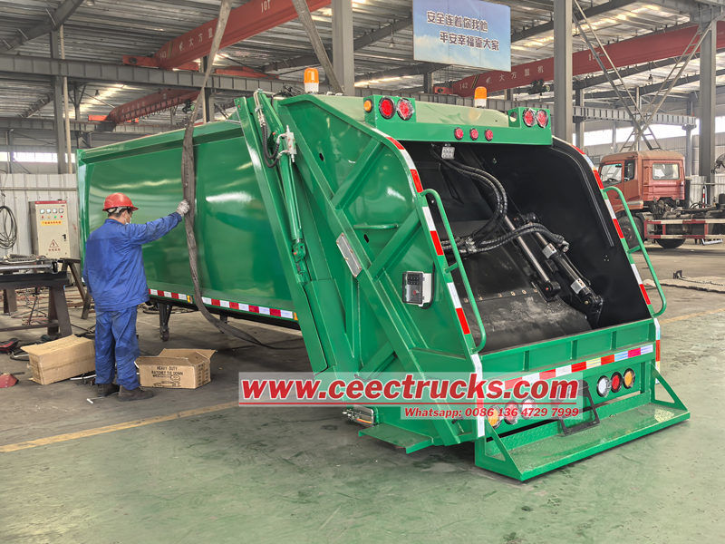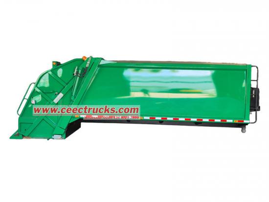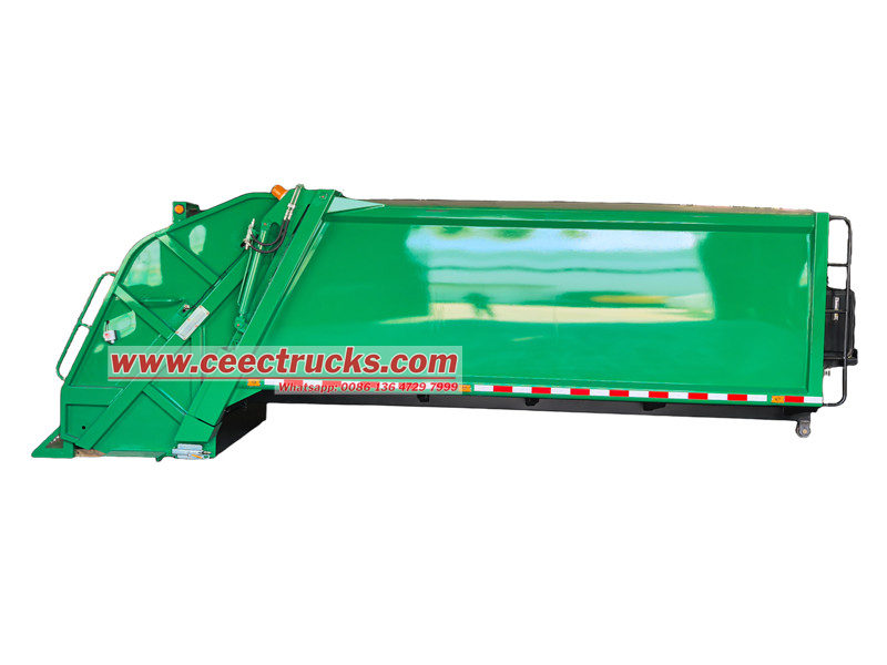 Yükleyici, temel olarak yükleyici tertibatı, kayar plaka, kazıyıcı ve diğer bileşenlerden oluşur. Bu bileşenler, üstün yük taşıma performansı için kiriş plaka veya kutu tipi bir tasarım kullanır. 12 metreküplük Çöp Toplama Kamyonu gövde yapısı Tamamen yüksek mukavemetli, hava koşullarına dayanıklı çelik levhalardan titizlikle üretilmiştir ve hafif tasarım hedeflerine ulaşırken genel yapısal stabiliteyi garanti eder.