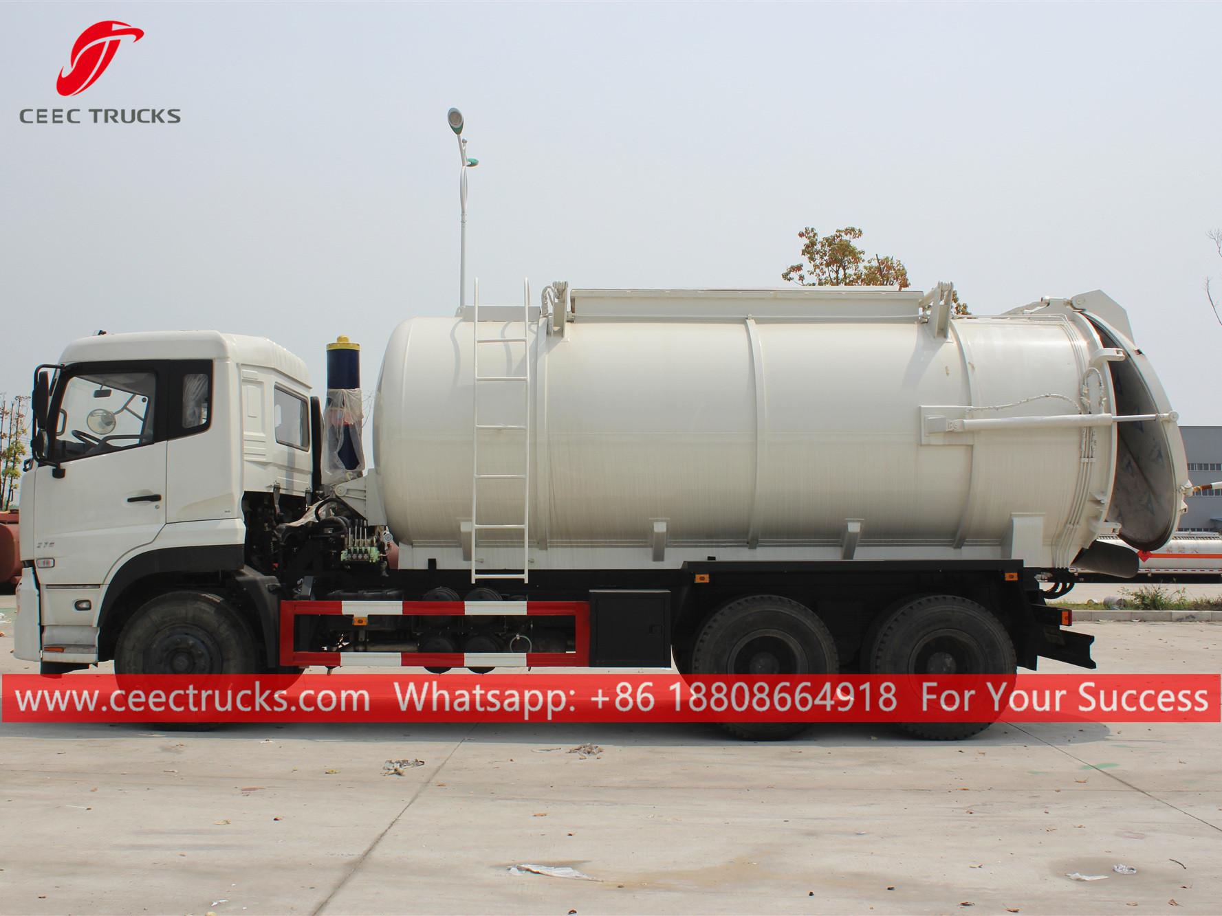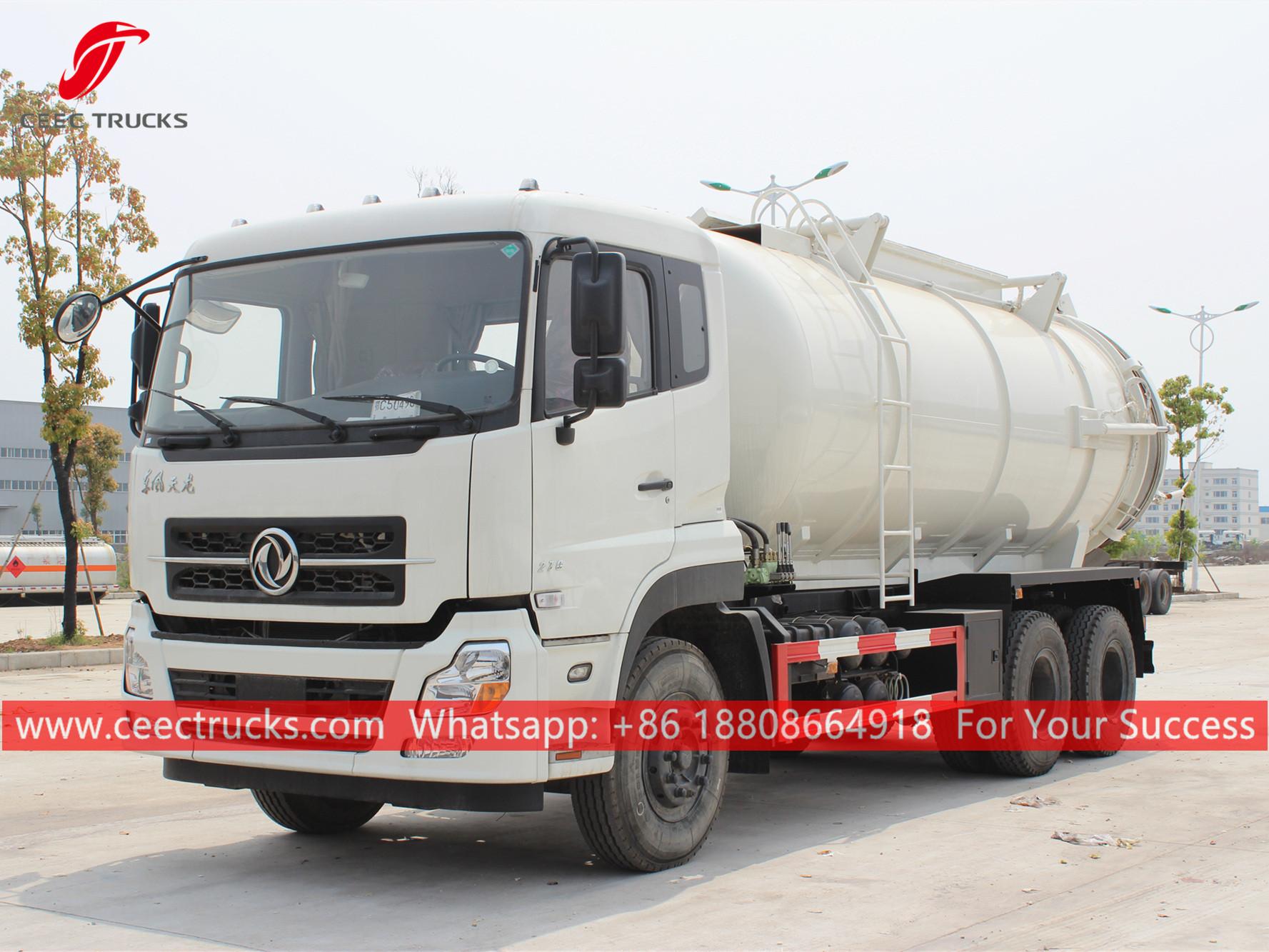 Dongfeng 20cbm vakumlu kamyon, Soldan direksiyonlu model 6x4 şasi, FAST 9 vitesli manuel şanzıman, CUMMINS 270HP dizel motor, boyama ve logolar gereksinime bağlıdır.