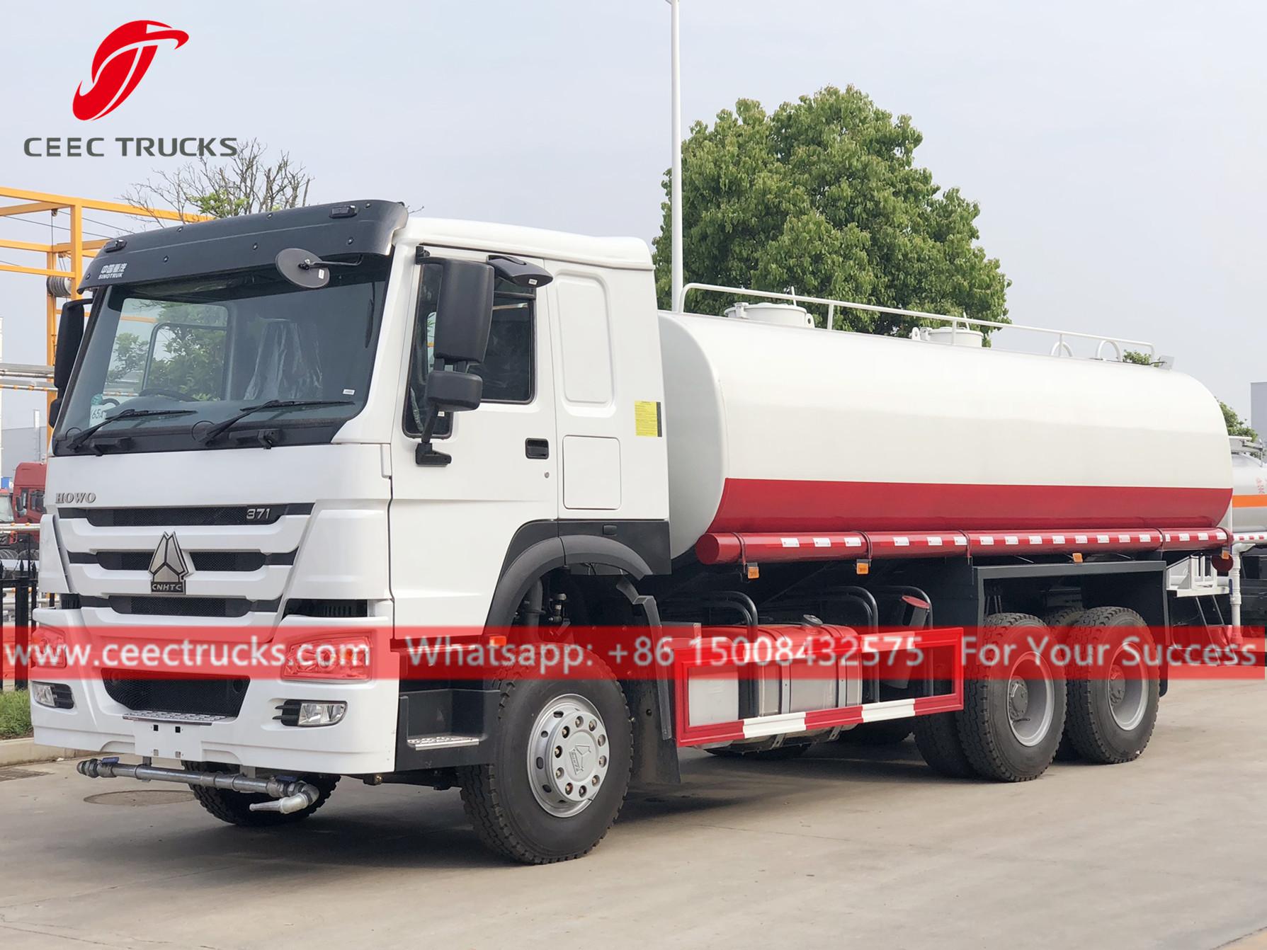 Afrika 20.000L su fıskiyesi kamyonu, HOWO ağır tip 6x4 şasi, FAST 9 vitesli manuel şanzıman, WEICHAI 380HP dizel motor, ünlü marka su pompası, isteğe bağlı ön, orta ve arka püskürtme memesi, Tüm boyama ve logolar gereksinime bağlıdır.