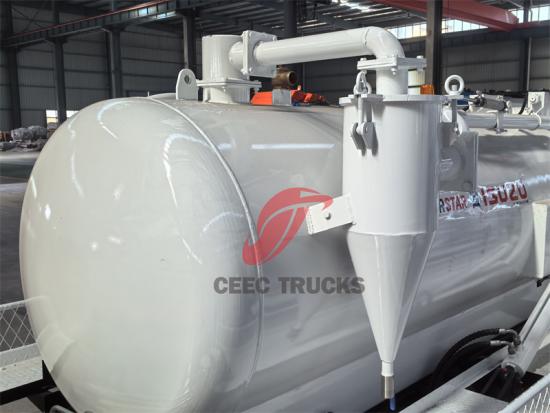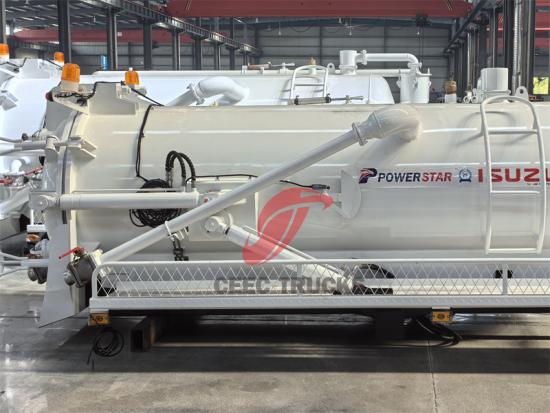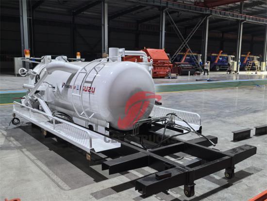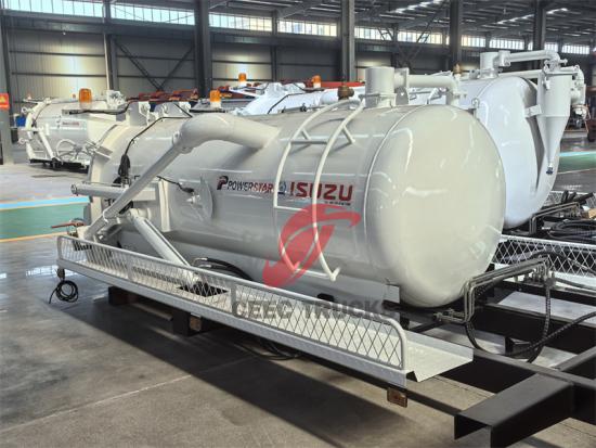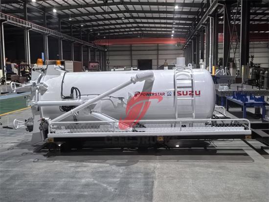 3 metreküp hacmindeki vakumlu kamyonun üst kısmı, kir ve pisliği hızla tanka çekmek için güçlü bir negatif basınç üretebilen yüksek güçlü bir vakumlu vakum pompası ile donatılmıştır.