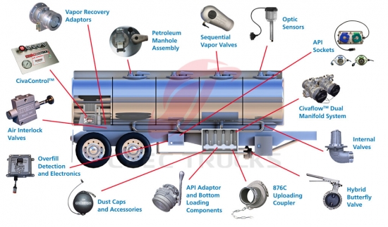 ---- Uluslararası markaların (ADR standartlarında) ana yakıt bileşenleri mevcuttur - OPW (Amerika), EMCO Wheaton (Amerika), DIXON (Avrupa) Civacon....