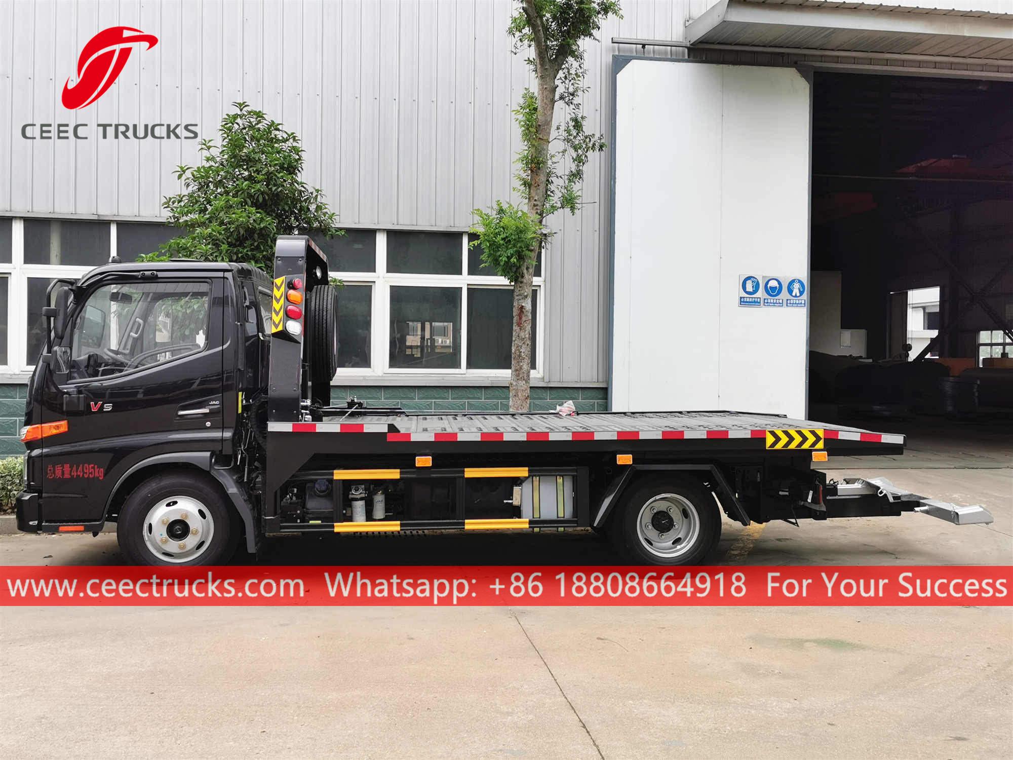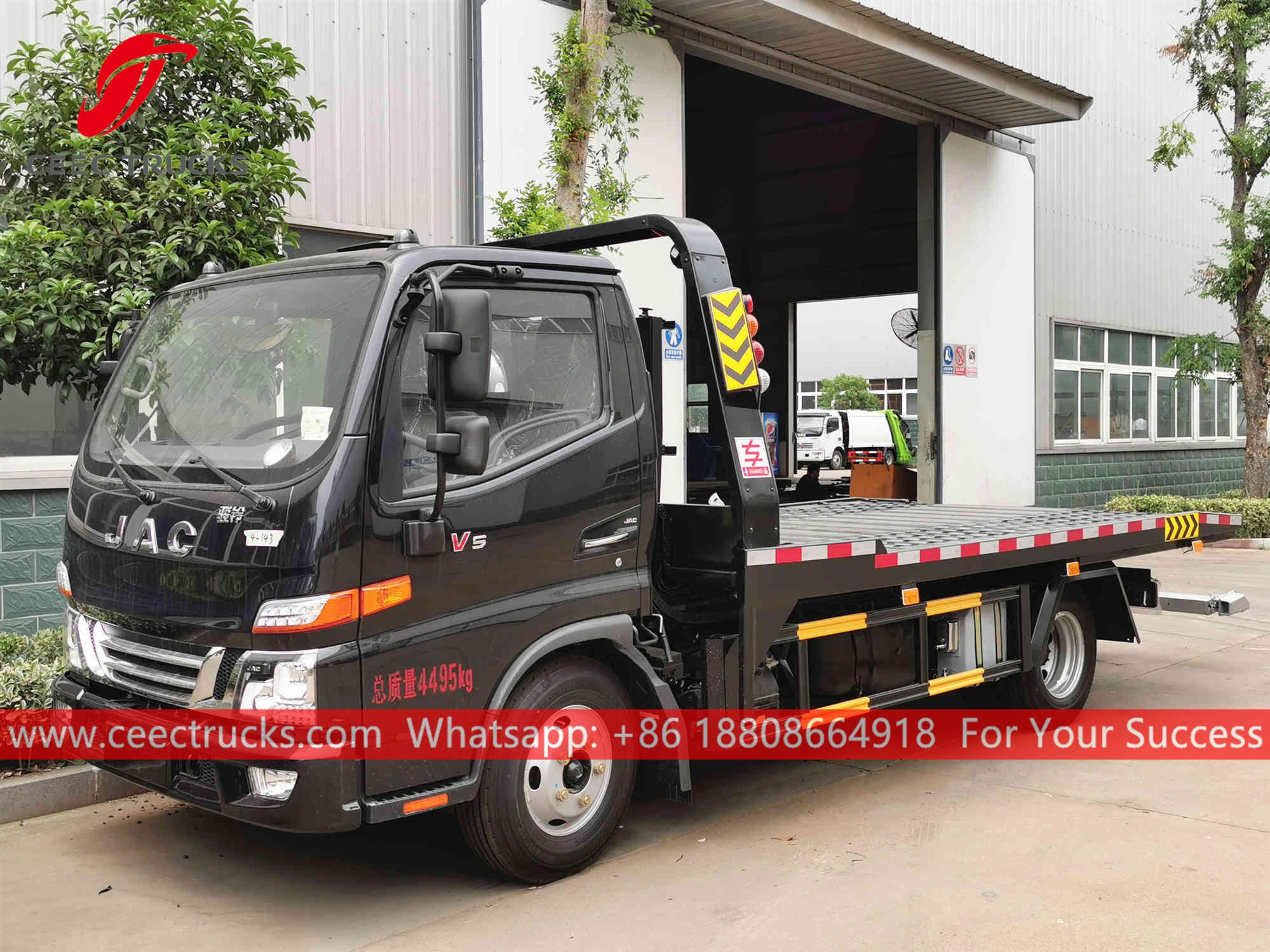 Düz yataklı çekici kamyon JAC (Ayrıcaisminde Vinç çekici kamyon, JAC Yol Kurtarma Kamyonu, Yol Vinç Kamyonu, satılık vinç çekici kamyon, Kayar platformlu kurtarma aracı)otoyollarda, havaalanlarında, limanlarda, otomobil tamirhanelerinde ve trafik polis istasyonlarında kullanılan yüksek verimli bir araçtır. Araçları hızla uzaklaştırabilir.
