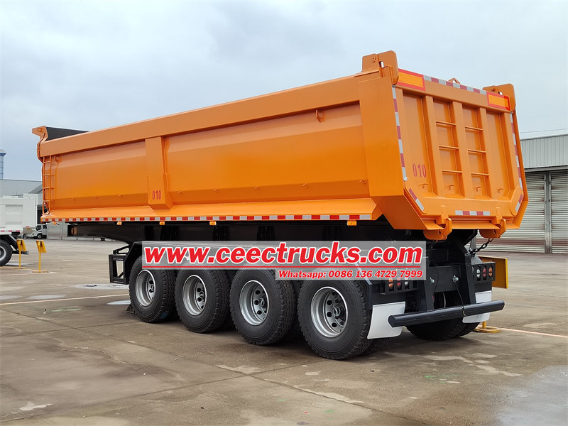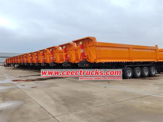 1. Güçlü Yükleme Kapasitesi:Bu4 dingilli damperli yarı römork50 tonluk yükleme kapasitesine sahip olup, çeşitli ağır yüklerin taşınmasını kolaylıkla halleder. Sağlam çerçeve yapısı ve optimize edilmiş aks yükü dağılımı, ağır yükler altında denge ve güvenlik sağlar.