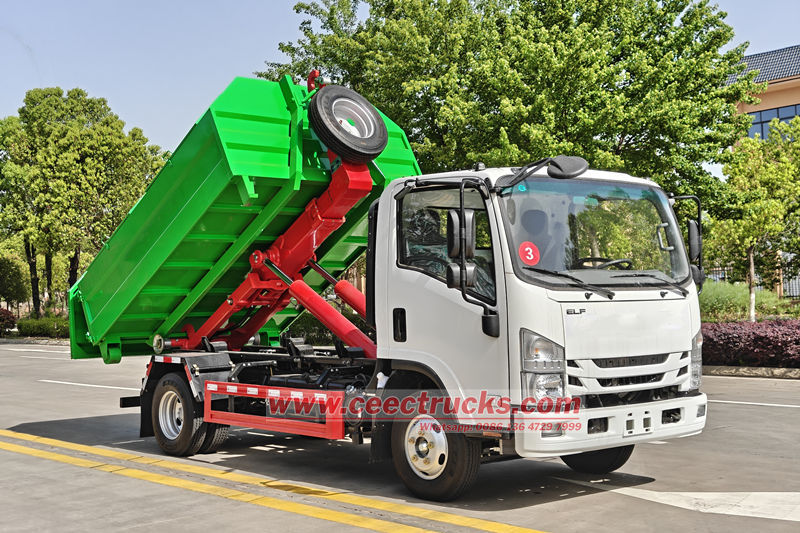 Isuzu NPR kancalı kaldırma çöp kamyonu |