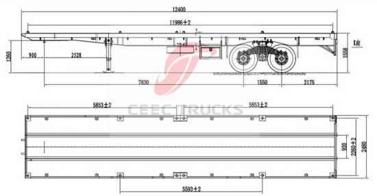 2 akslı 8 tekerlekli bogie süspansiyonlu römork, iskelet modeli esas olarak nakliye konteyner taşımacılığı için, BPW / FUWA aks cihazı, JOST kingpin ve JOST iniş ayakları en iyi performansı sunar. Tüm CEEC bogie süspansiyonlu römorklar konteyner CKD ve SKD taşımacılığını kullanabilir
