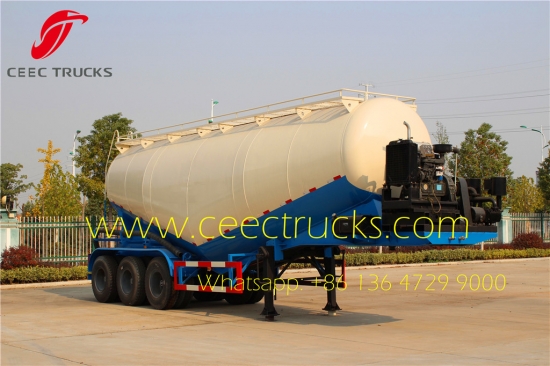 CEEC TRUCKS produced powder transport semitrailer, also can be called cement tanker trailer, cement trailers, cement flour tanker trailer, bulk powder tanker trailer. which equipped with air compressor, and the cement trailer self loading is used for carrying cement, flour or any other dry powder materials in bulk and it has ability to load the material by it self without need of any other loading machine. We use China famous brand vacuum motor for suciotn and loading operation.