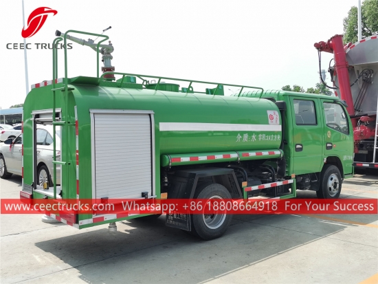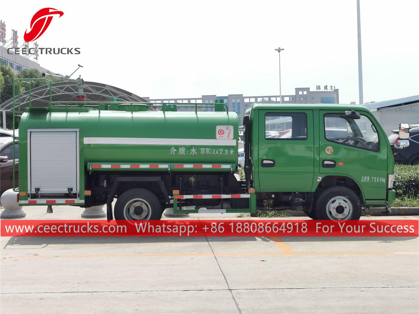 DONGFENG 4.000L sulama kamyonu, DONGFENG 4x2 soldan direksiyonlu şasi, 5 vitesli manuel şanzıman, CHAOCHAI 102HP dizel motor, ünlü marka su pompası, isteğe bağlı ön, orta ve arka püskürtme memesi. Tüm boyama ve logolar gereksinime bağlıdır.