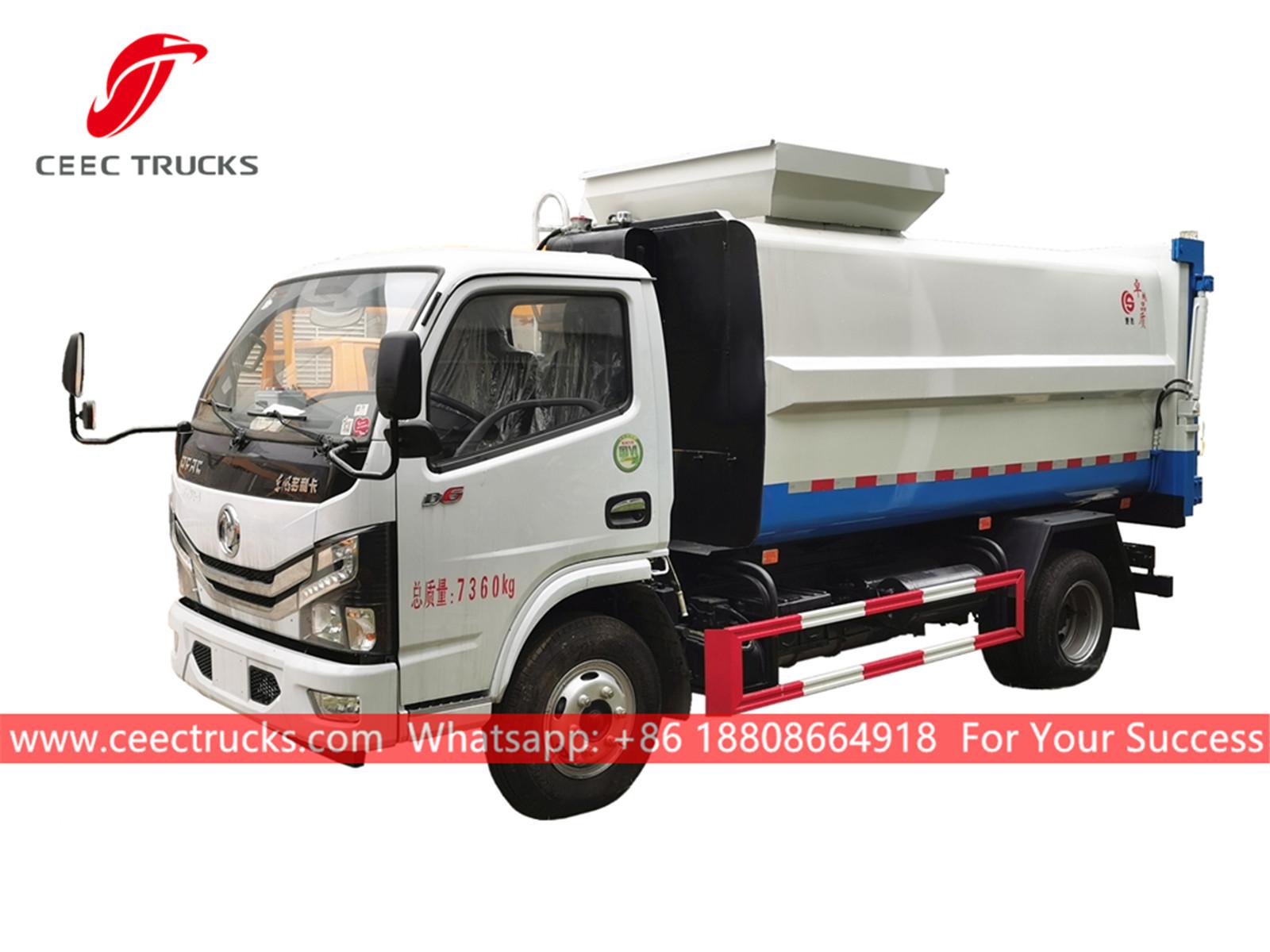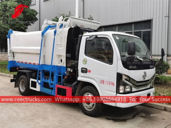 DONGFENG 5cbm Mutfak atığı yükleme kamyonu, DONGFENG 4x2 şasi, manuel 5 vitesli manuel şanzıman, CHAOCHAI 130HP dizel motor, otomatik yan kaldırma cihazı, hidrolik arka kapı ile donatılmıştır, boyama ve logolar gereksinime bağlıdır.