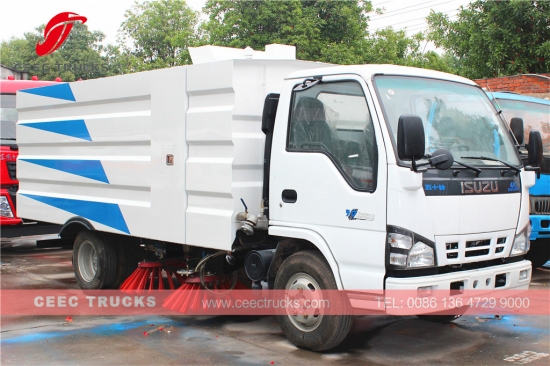 Road Sweeper truck 5cbm ISUZU (also called road sweeper truck, hydraulic street sweeper, vacuum road sweeping truck, trash collection truck, road cleaning vehicle) is designed for daily sweeping in community, city, highway, construction site, overhead roads, bridges, squares, airports as well as docks with asphalt concrete and cement concrete road surface.
