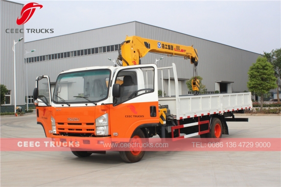 2018 yeni tasarım ISUZU 5T teleskopik bomlu vinç kamyonu, ISUZU teknolojisi dizel motor 190HP, kolay kullanım için Manuel MLD 6 vitesli şanzıman, 5000 kg teleskopik bomlu vinç ile donatılmıştır, ayrıca seçim için Uzaktan Kumandaya sahiptir, kargo kutusu uzunluğu 3000 mm ile 4500 mm arasında değişebilir