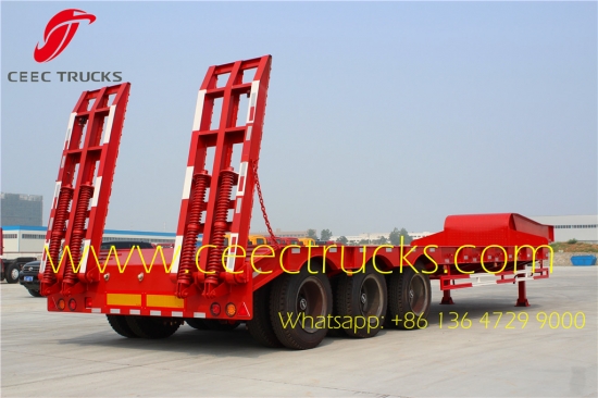TOP tasarım 3 akslı alçak yataklı yarı römork, Q345 I-kiriş, 12-20T opsiyonel BPW aks, en iyi performans için JOST iniş ayakları ve kingpin. 50T kapasiteli alçak yataklı yarı römorklarımız Afrika ülkelerine yaygın olarak ihraç edilmektedir.