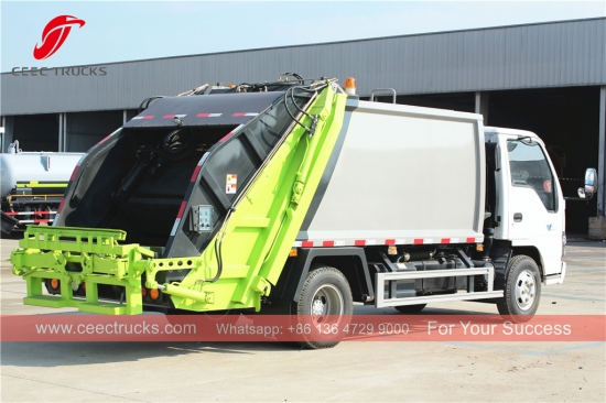 Dubai 5cbm çöp sıkıştırma kamyonu en iyi fiyatla satılıktır, ISUZU 4x2 şasi, 120HP dizel motor, MSB 5 vitesli manuel şanzıman, Almanya Siemens PLC kontrol kutusu ile donatılmıştır, arka yatırma cihazı 240L, 360L, 660L ve 1100L uluslararası çöp kutularını yükleyebilir, boyama ve kütükler gereksinime bağlıdır.