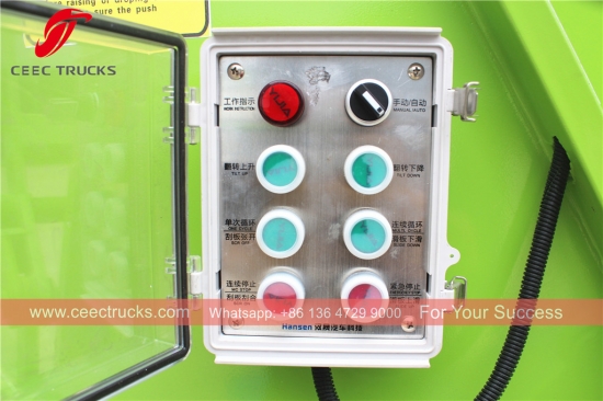 | Optional | ** Back alarm and Camera can be equipped. ** Italy mulit-valve can be choose. ** 240L (single bin or double bin) or standard 660 L, 1100 L bins with bin lifter can be choose. | |