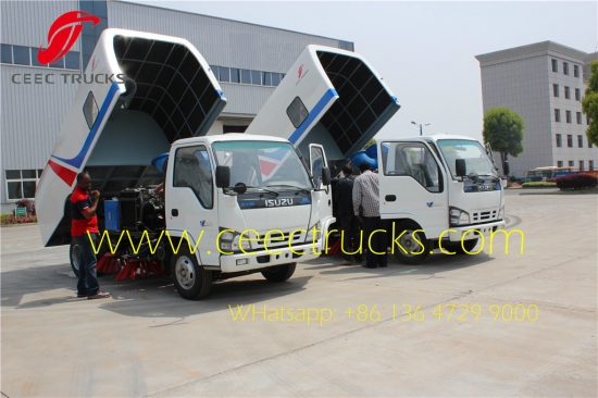 (Nijerya müşterisi CEEC üretimi ISUZU 5 CBM yol süpürme kamyonları için tüm detayları kontrol edin)