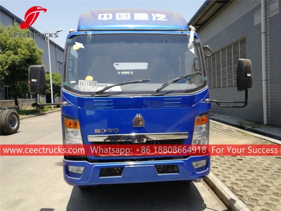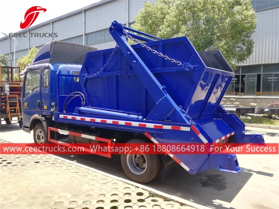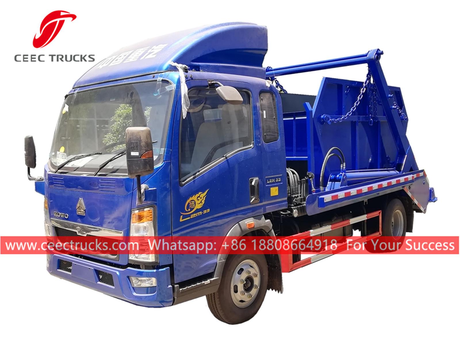 HOWO 6cbm skip yükleyici çöp kamyonu, HOWO 4x2 şasi, Manuel 6 vitesli manuel şanzıman, 120HP dizel motor, yüksek mukavemetli çelik salıncak kolu sistemi, Hidrolik kontrol cihazı ve Elektrik kontrol kutusu opsiyonel. Tüm boyama ve logolar gereksinime bağlıdır.