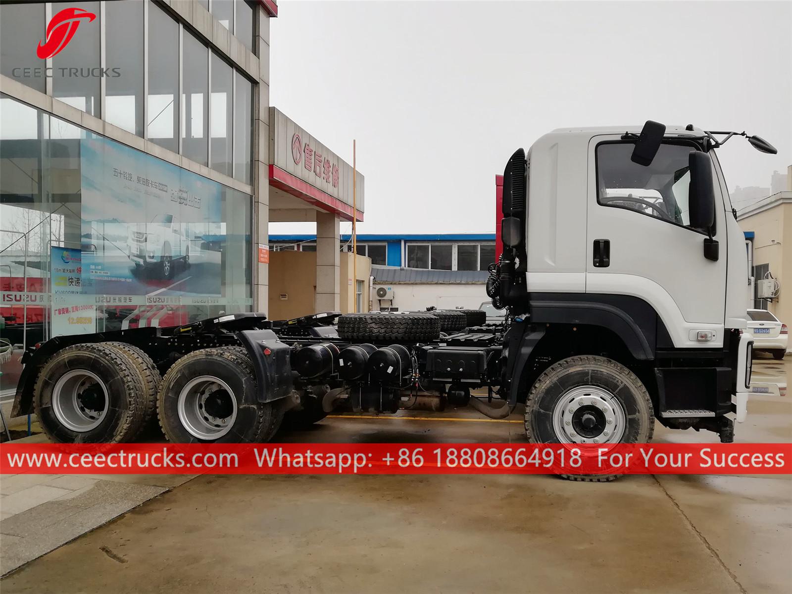 ISUZU 6x4 çekici, sadece soldan direksiyonlu, Japon teknolojisi ISUZU 350HP dizel motor, FAST 12 vitesli manuel şanzıman, maksimum çekme ağırlığı 40 tona kadar çıkabilir, boyama ve logolar gereksinime bağlıdır.