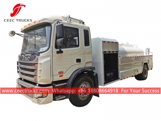JAC 8.000L yüksek basınçlı su kamyonu, JAC 4x2 şasi, 5 vitesli manuel şanzıman, YUCHAI 190HP dizel motor, ünlü marka su pompası, yüksek basınç hortumları ve nozulları. Tüm boyama ve logolar gereksinime bağlıdır.
