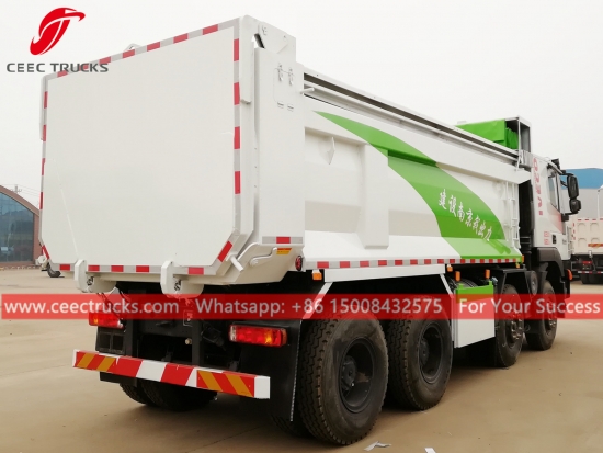 60 Ton damperli kamyon, IVECO 8x4 LHD şasi, FAST 12 vitesli manuel şanzıman, ünlü Çin markası SFH 390HP dizel motor, yüksek mukavemetli çelik damperli gövde, isteğe bağlı HYVA veya yerli hidrolik kaldırıcı. Tüm boyama ve logolar gereksinime bağlıdır.