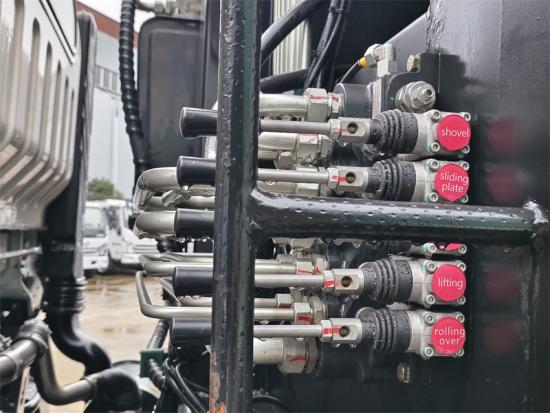Çöp kamyonu, elektrik ve hidrolik kontrolün avantajlarından kapsamlı bir şekilde yararlanan elektro-hidrolik kontrol valfi ve PLC programlanabilir kontrol sistemine sahiptir. Elektrik-hidrolik kombine kontrol sayesinde, hidrolik sistem ile elektrik sistemi arasındaki arayüz sorununu etkili bir şekilde çözer ve kullanım güvenilirliğini artırır.