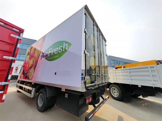 Bu, yüksek performanslı bir soğutmalı kamyondur. Howo hafif hizmet tipi Şasi. 1 ile donatılmıştır 16 beygir YN4102QBZL motoru, Euro 6 standartlarını karşılayan emisyonlara sahiptir. Boyutları kargo gövde 4,5 metre uzunluğunda, 2,44 metre genişliğinde ve 2,40 metre yüksekliğindedir ve iyi bir yalıtım sağlamak için 105 mm kalınlığında FRP+PU köpük sandviç yapısı kullanır. Bir Carrier SUPRA 850 soğutma ünitesiyle donatılmış olup, sıcaklık kontrol aralığı -15°C ile +20°C arasındadır ve çeşitli soğuk zincir taşıma ihtiyaçlarını karşılar. dondurucu kamyonet 95 km/saat maksimum hıza ulaşabilir, şehir içi dağıtım ve orta ve kısa mesafe taşımacılığına uygundur. Howo hafif hizmet tipi Dondurucu kamyonu isteğe bağlı arka görüş kameraları, alüminyum alaşımlı zeminler ve diğer yapılandırmalarla donatılabilir ve gövde rengi ve logosu müşteri ihtiyaçlarına göre özelleştirilebilir. Genel olarak bu, güvenilirlik, verimlilik ve esnekliği bir araya getiren bir soğutmalı lojistik çözümüdür.