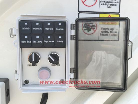 Isuzu arkadan yüklemeli çöp kamyonu, gelişmiş bir işletim sistemiyle donatılmış olup, bilgisayar kontrol sistemi veya PLC kontrol sistemi kullanır, kullanımı kolaydır ve son derece otomatiktir. Sürücü, kontrol odasındaki kontrol paneli veya aracın arkasındaki kontrol kutusu aracılığıyla çöplerin yüklenmesini, sıkıştırılmasını ve boşaltılmasını kolayca gerçekleştirebilir. Ayrıca, araçta farklı çalışma gereksinimlerini karşılamak için tam otomatik ve yarı otomatik gibi çeşitli çalışma modları arasından seçim yapılabilir. Bu tasarım, temizlik işçilerinin iş yoğunluğunu azaltır ve iş verimliliğini artırır.