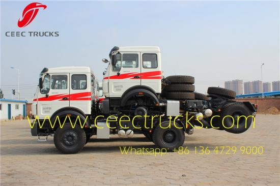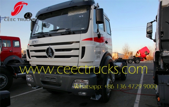 Beiben 4*2 çekici kamyon tedarikçisi, Benz teknoloji aks cihazı, weichai WP10.290 motor, en üst düzey performans için FAST 9 vitesli manuel şanzıman, maksimum çekme ağırlığı 35000 kg. Kenya, Tanzanya, Kamerun için özel