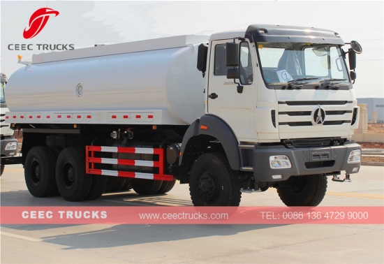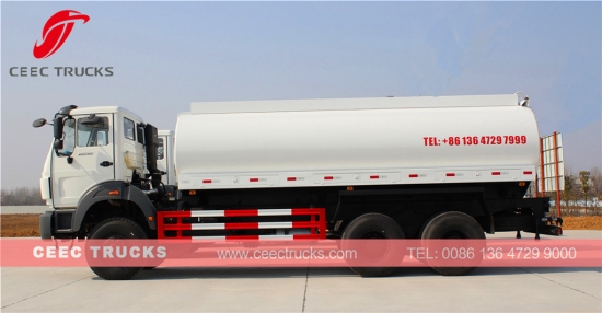 Kuzey benz dört tekerlekten çekişli şasi, WEICHAI 380HP motor, kolay kullanım için FAST 9 vitesli manuel şanzıman, yüksek mukavemetli çelik su tankeri malzemesi kullanan süper güçlü Beiben 20000 litre su tankeri, su tankerinin hizmet ömrünü uzatır