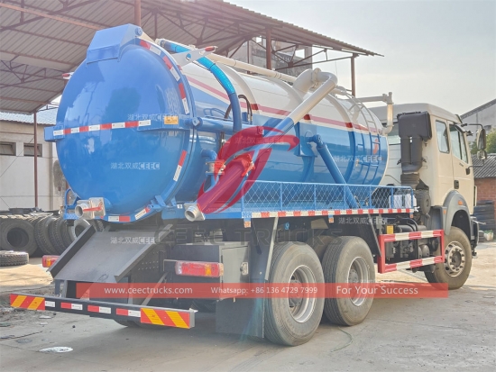 Beiben 6×4 Kanalizasyon Vakum Kamyonu (ayrıca vakumlu emme kamyonu, kanalizasyon emici, Beiben kanalizasyon tankeri, kanalizasyon boşaltıcı, foseptik boşaltıcı, fosseptik boşaltıcı olarak da adlandırılır) kirli su, çamur, septik, ham petrol ve küçük taşlar, tuğlalar gibi katı maddeler gibi sıvıları toplamak, taşımak ve boşaltmak için kullanılır. Kanalizasyon, fosseptik, fosseptik çukuru, su yolu vb. temizlemek için uygundur. Çevre ve sanitasyon alanında yaygın olarak kullanılır.