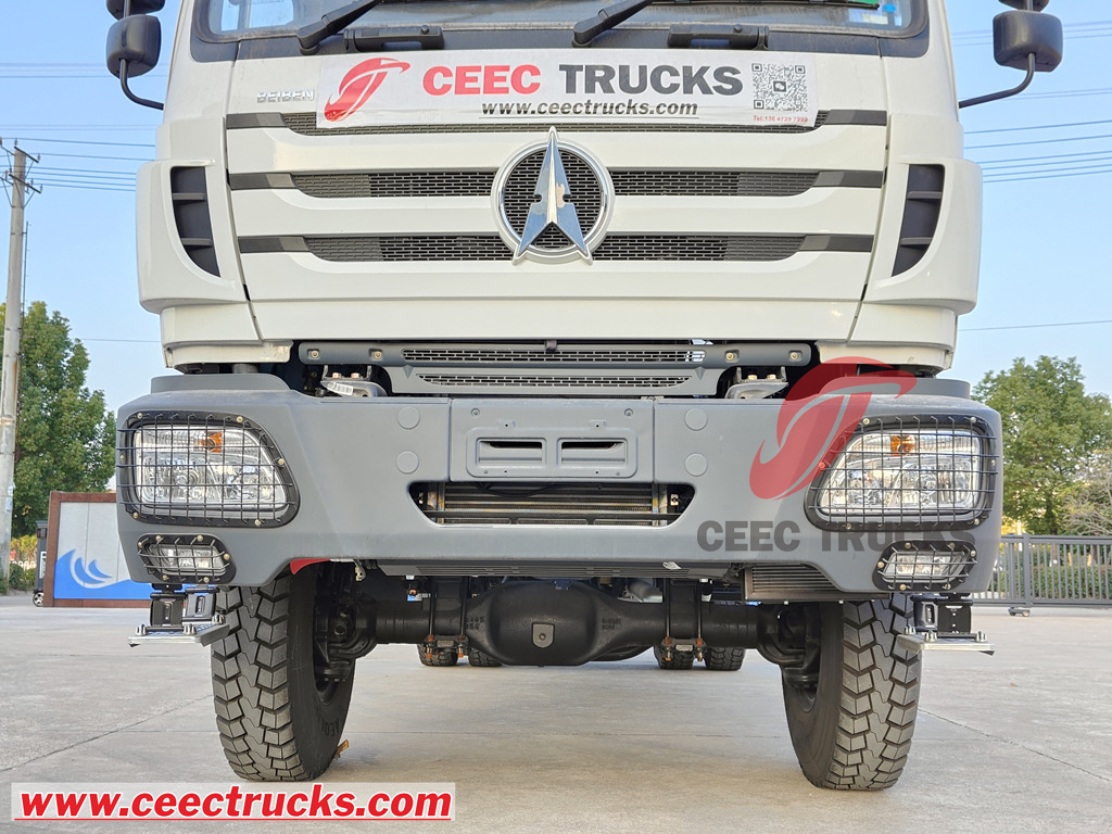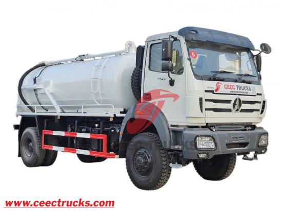 Beiben fosseptik boşaltıcısı şu anlama gelir:Beiben 4x4 offroad vakumlu tanker kamyonuBeiben kamyon şasesi ile üretilmiştir. Sıvı ve katı atıkların temizlenmesi ve taşınması için tasarlanmış özel bir araçtır. ND numarası ND1190ED3J6Z22 olan orijinal Beiben 4x4 kamyon şasesi, yataksız klasik NG80B kısa kabin, çöl ve çok zorlu yol koşullarına uygun 4x4 offroad sürüş modeli. TOP 1 Çin markası WEICHAI dizel motor WP10.290E32 modeli, 209KW / 290HP emisyon 9726cc, FAST 9 vitesli manuel şanzıman 9 ileri ve 2 geri, Beiben 4x4 offroad fosseptik kamyonu için özel transfer şanzımanı VG1400, direksiyon mekanizması 8098, yay çelik plaka parçaları 10/8+6, 6+1 üniteli özelleştirilmiş lastik 12.00R20 modeli, bir stepne dahil, yakıt tankeri kapasitesi 400L, ön aks kapasitesi 7 ton ve arka aks kapasitesi 13 ton olan 4800mm dingil mesafesi, Beiben NG80B kamyon kabini için özelleştirilmiş beyaz boya.