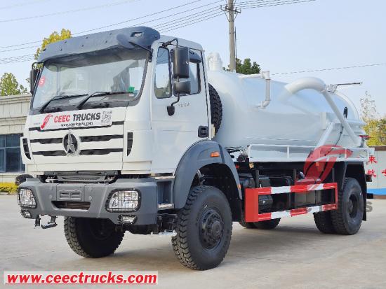China North Benz 1929 Beiben 4x4 offroad vakum tanker kamyonları şehir, topluluk, fabrika ve okul boyunca yaygın olarak kullanılır. Genellikle negatif hava basıncı oluşturmak için düşük hacimli kayar kanatlı pompa veya sıvı halka pompası kullanırlar. Diyafram çamur pompalarının kullanımı daha az yaygındır, ancak daha basit bir tasarım ve genellikle daha düşük genel maliyet avantajına sahiptir. Dezavantajı, mekanik parçaların çamurla temas etmesidir, bu daha yaygın vakum pompaları için geçerli değildir.
