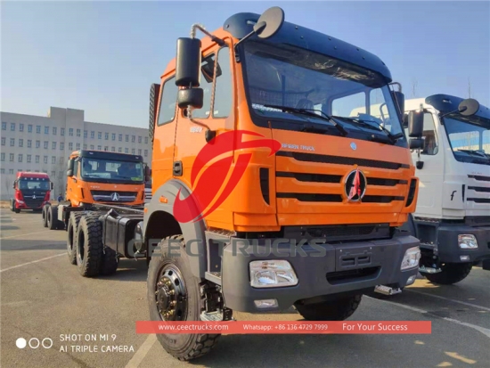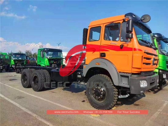 6*6 sürücü beiben 2642 kargo kamyonuŞasi, askeri kalite güvencesi, ünlü marka weichai 420 hp dizel motor, 12JS200T son derece güvenilir şanzıman, 4450 + 1450 mm dingil mesafesi, ağır hizmet tipi güçlendirilmiş 4 U cıvatalı süspansiyon sistemi, Mercedes benz teknolojisi ön aks ve arka aks, benz teknolojisi NG80B kabin.
