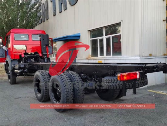 Kongo beiben 6*6 tahrikli kargo kamyonu şasesi, askeri kalite güvencesi, ünlü marka weichai 420 hp dizel motor, 12JS200T son derece güvenilir şanzıman, 4450 + 1450 mm dingil mesafesi, ağır hizmet tipi güçlendirilmiş 4 U cıvatalı süspansiyon sistemi, Mercedes benz teknolojisi ön aks ve arka aks, benz teknolojisi NG80B kabin.