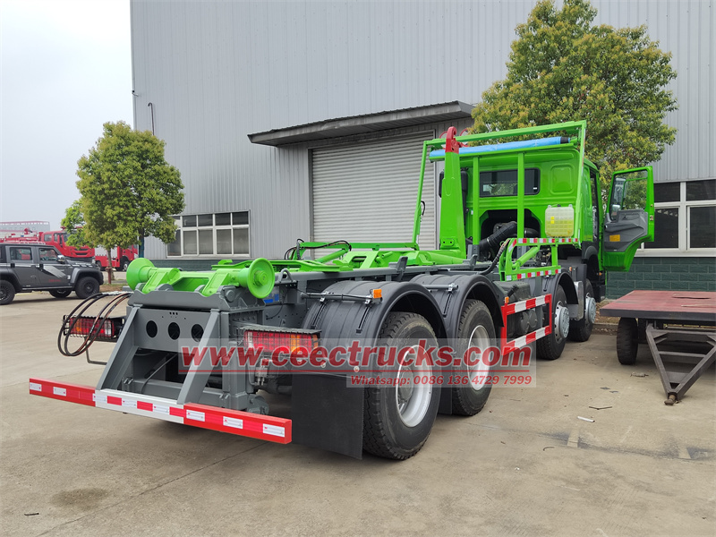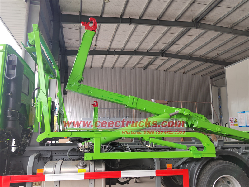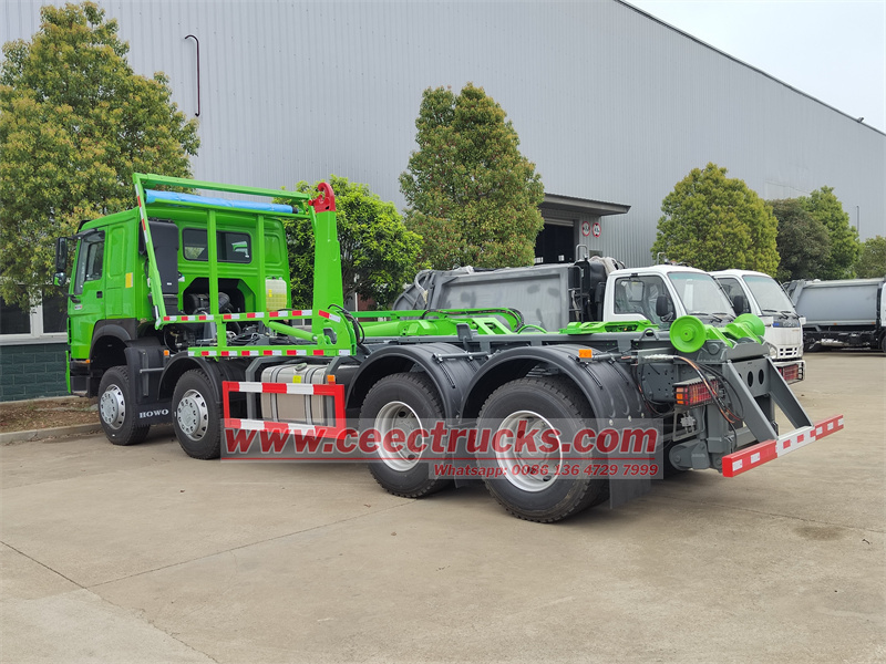 HOWO 8x4 ağır hizmet tipi kol kaldırmalı çöp kamyonu, Sinotruk HOWO serisi şasiye dayalı ayrılabilir bölmeli ağır hizmet tipi bir kamyondur. İki işlevi vardır: malların kendi kendine boşaltılması ve kutunun otomatik olarak yüklenmesi ve boşaltılması (tam yükleme ve boşaltma).HOWO 8x4 Kamyon üstü kancalı yükleyiciinşaat alanında yaygın bir makinedir. Genellikle inşaat projeleri için malzeme kaldırmak için kullanılırlar, ancak çok yönlülükleri nedeniyle çeşitli diğer görevler için de kullanılabilirler. Bu tip yükleyiciler, aracın arkasına monte edilmiş ve kabinin üzerine uzanan yatay bir bom ile donatılmıştır. Makine daha sonra malzemeleri kolunun ucundaki zincirler veya kancalarla kavrayarak kaldırabilir. Özelleştirilmiş HOWO 8x4 kancalı çöp kamyonları maksimum 30 ton ağırlık yükleyebilir, çöp kutuları 6000 mm uzunluğunda tasarlanabilir, normal atık toplama ve taşıma için çok uygundur.