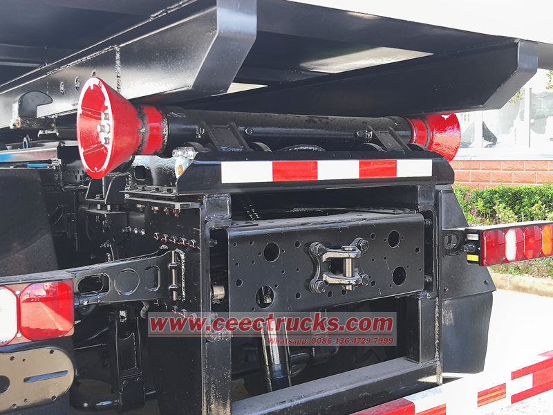 ✦ Boşaltma işlemi tamamlandıktan sonra, kanca kolu geri çekilir ve yeniden ayarlanır, böylece yükleme adımına uygun olarak tüm süreç tersine döner. Daha fazla işlem gerekirse, boş konteyner bir sonraki atık toplama işlemi için hızla değiştirilebilir.