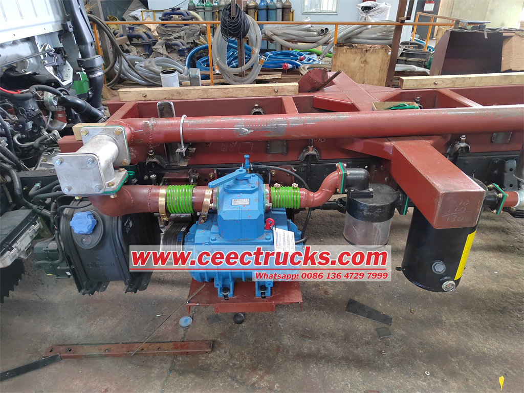 Kanalizasyon Tanker Gövdesi:Vakumlu kanalizasyon vakum kamyonunun üst kısmı kanalizasyon emme tankı, vakum pompası, boru sistemi, kontrol sistemi vb. içerir. Bunlar arasında emme tankı emilen çamuru depolamak için kullanılır, vakum pompası emme gücü sağlar ve boru hattı sistemi çeşitli bileşenleri bağlamaktan ve çamuru taşımaktan sorumludur.