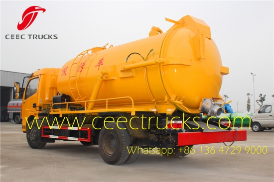 3.Ekipmanlar: karbon çelik malzemeden yuvarlak tank, yüksek güçlü vakum pompası, boşaltma gövdesi, hidrolik olarak açılabilen arka kapak, kendiliğinden akan delik ve özel vana ile donatılmış arka kapak, emiş yüksekliği 5-8 metre olabilir, özel kanalizasyon emiş borusu ile donatılmıştır;