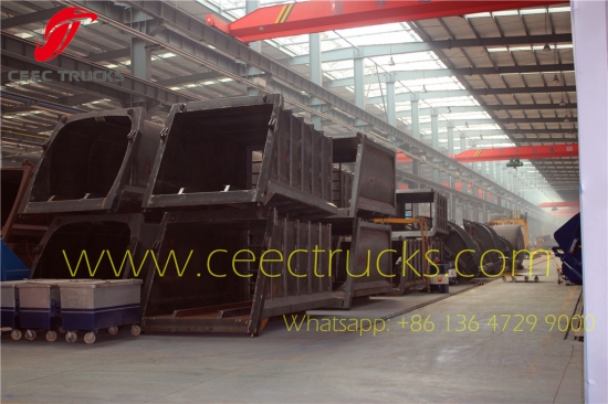 EN İYİ kalitede 12CBM çöp sıkıştırma kamyonu üreticisi CEEC TRUCKS, sıkıştırma gövdesi yan plaka tertibatını, özel olarak tedarik edilen yüksek mukavemetli çelik malzemeyi, yan ve alt kısım için kalınlığı 5 mm'nin üzerinde, standart olarak pas önleyici boyayı, gerektiği gibi logoları tedarik etti