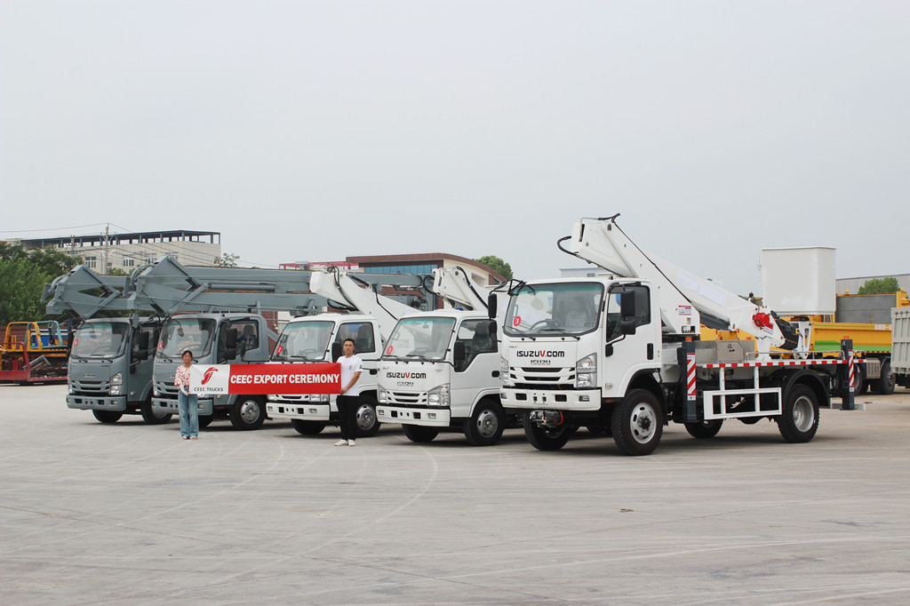 CEEC, Ağustos 2024'te Cibuti'ye üç ISUZU NPR 19m eklemli bomlu hava çalışma platformu ve iki ISUZU NKR 20m teleskopik bomlu hava çalışma platformu da dahil olmak üzere beş ISUZU hava çalışma platformunu başarıyla ihraç etti. Bu araçların başarılı teslimatı, yalnızca CEEC'nin üretimdeki lider teknolojisini göstermekle kalmadıISUZU Hava çalışma platformu kamyonlarıancak aynı zamanda müşteri ihtiyaçlarına ilişkin derin anlayışını ve hızlı yanıt verme yeteneğini de yansıtıyordu.