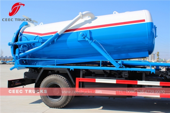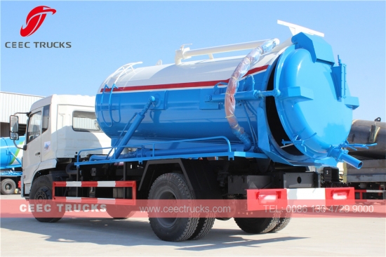 Dongfeng 10000L fosseptik boşaltıcı, CUMMINS 170HP dizel motor, 6 vitesli manuel şanzıman, 10 metreküpe kadar çıkabilen yüksek mukavemetli çelik malzeme tankeri, WEILONG vakum pompası, atık boşaltma için hidrolik kaldırma cihazı, boyama ve logolar isteğe bağlıdır.