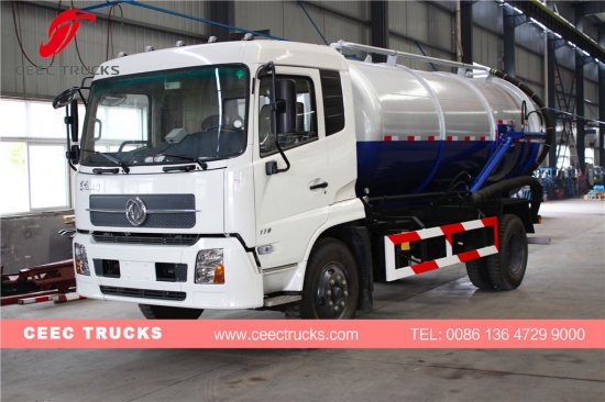 Dongfeng 10000L fosseptik boşaltıcı, YUCHAI 160HP dizel motor, 6 vitesli manuel şanzıman, 10 metreküpe kadar çıkabilen yüksek mukavemetli çelik malzeme tankeri, WEILONG vakum pompası, atık boşaltma için hidrolik kaldırma cihazı, boyama ve logolar isteğe bağlıdır.