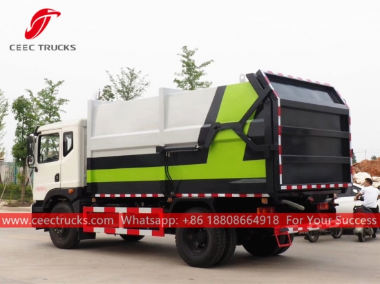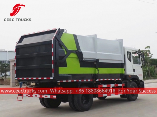 Dongfeng 16000 litrelik çöp toplama kamyonu, Dongfeng LHD / RHD 4*2 şasi, CUMMINS 180HP dizel motor, 8 vitesli manuel şanzıman, kolay kullanım için hidrolik arka kapı kullanıyor. Tüm boyama ve logolar gereksinime bağlıdır.