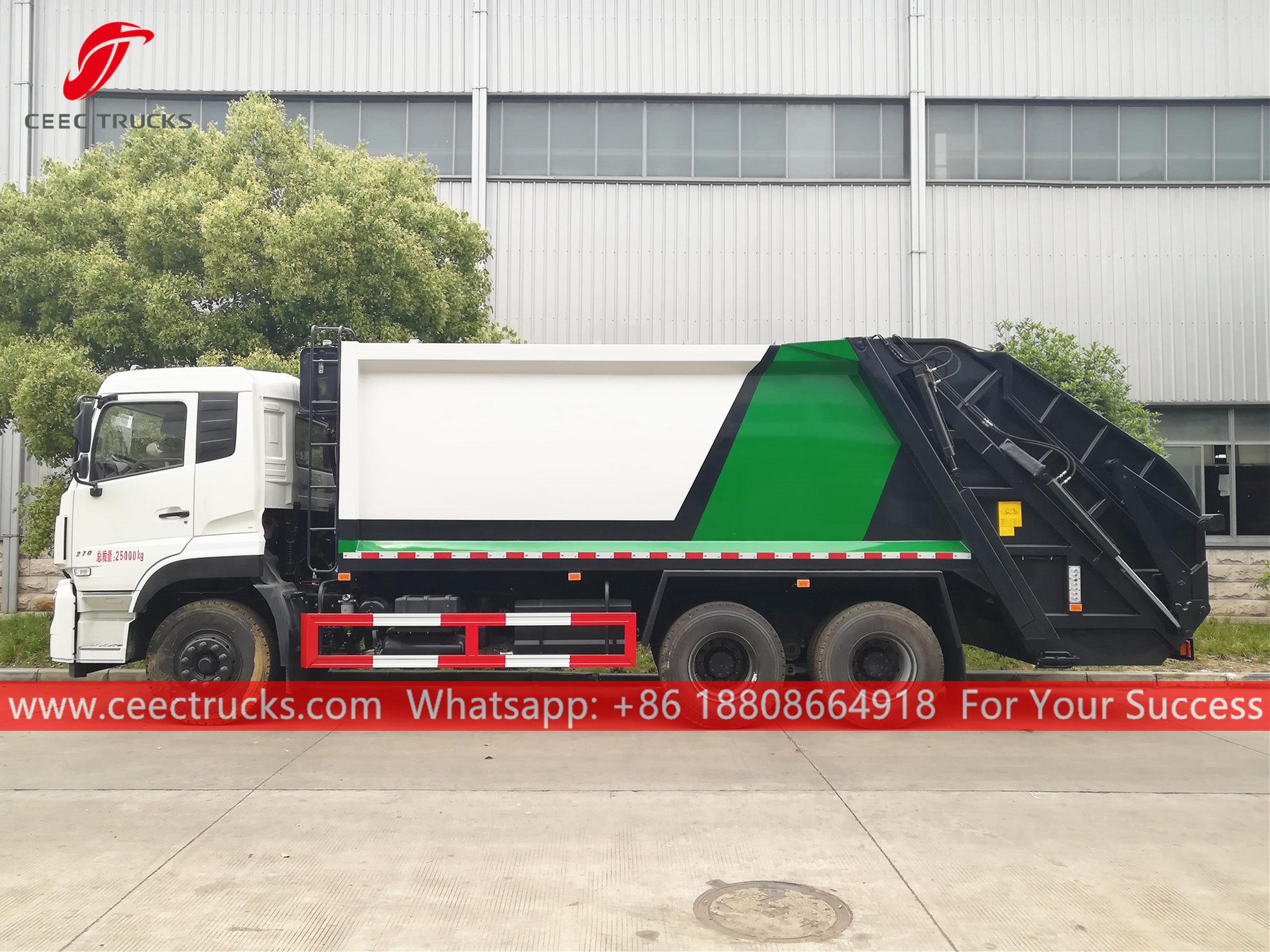 Dongfeng 18CBM Atık Kompaktörü (ayrıca denir Dongfeng Sıkıştırmalı çöp kamyonu, arka yüklemeli çöp sıkıştırıcı, çöpsıkıştırılmışkamyon Dongfeng, kaliteli geri yüklemeli çöp kamyonu, Dongfeng atık sıkıştırma kamyonu, 10 tekerlekli çöp toplama kamyonu, sıcak satış çöp sıkıştırma kamyonu) dır her türlü şehir, büyük gar, liman ve iskele, havaalanı, sanayi ve maden işletmeleri, askeri birlikler gibi yoğun nüfuslu alanlar gibi yaşam alanlarında günlük çöp taşımacılığına uygun olarak tasarlanmıştır.
