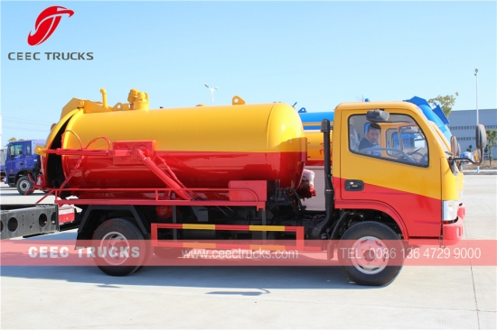 2017'nin en iyi satış ürünü Dongfeng 4000L fosseptik boşaltma kamyonu, CHAOCHAI 95HP dizel motor, 5 vitesli manuel şanzıman, 4 metreküpe kadar çıkabilen yüksek mukavemetli çelik malzeme tankeri, standart olarak WEILONG vakum pompası, atık boşaltma için hidrolik kaldırma cihazı, boyama ve logolar isteğe bağlıdır.