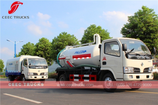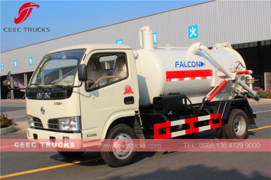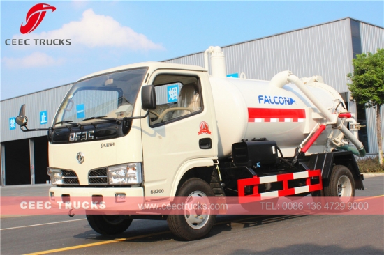 CHAOCHAI 95HP dizel motor, 5 vitesli manuel şanzıman, yüksek mukavemetli çelik malzeme tankeri kullanan Dongfeng 4000L vakumlu kanalizasyon emme kamyonu 4cbm'ye kadar çıkabilir, standart olarak WEILONG vakum pompası, boyama ve logolar isteğe bağlıdır.