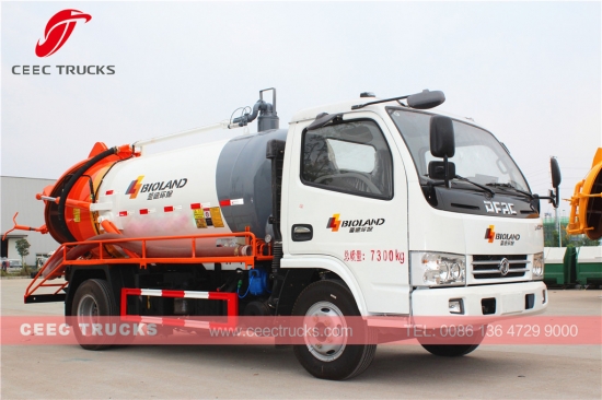 CHAOCHAI 95HP dizel motor, 5 vitesli manuel şanzıman, 4 metreküpe kadar çıkabilen yüksek mukavemetli çelik malzeme tankeri, standart olarak WEILONG vakum pompası, atık boşaltma için hidrolik kaldırma cihazı kullanan Dongfeng 4000L fosseptik boşaltma kamyonu, boyama ve logolar talebe bağlıdır.